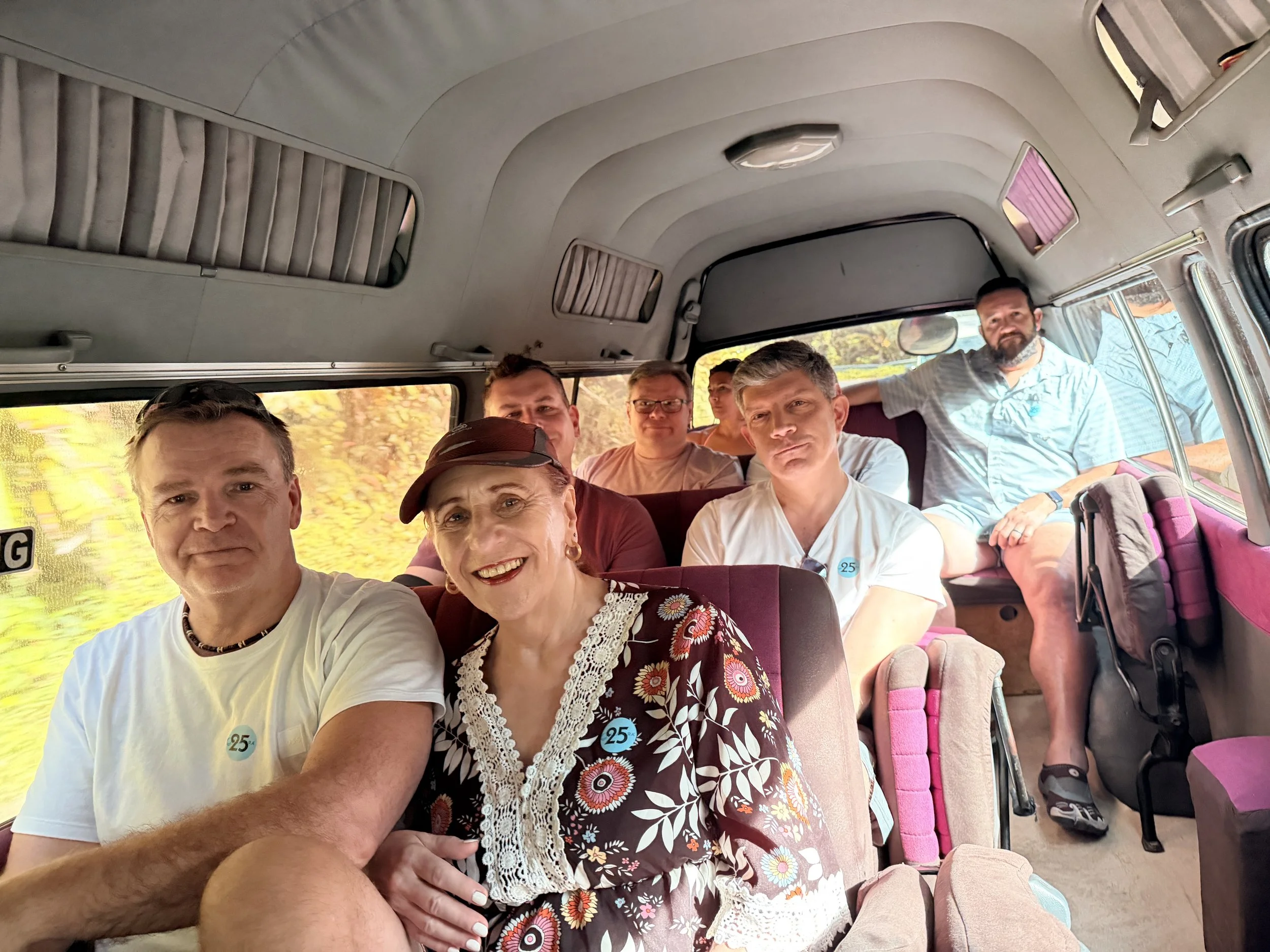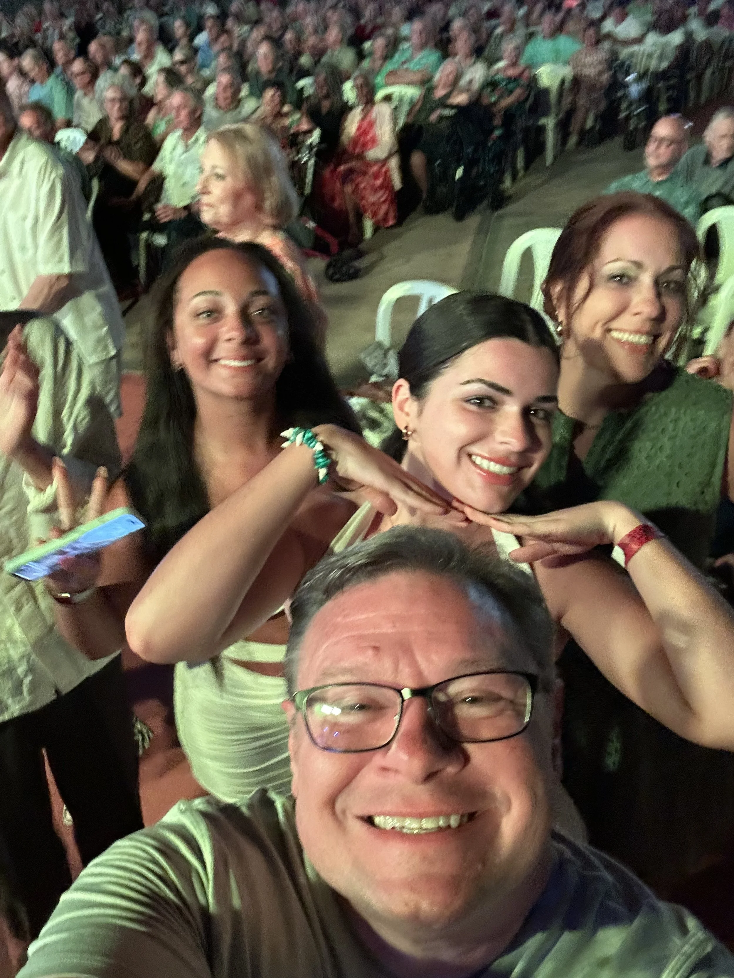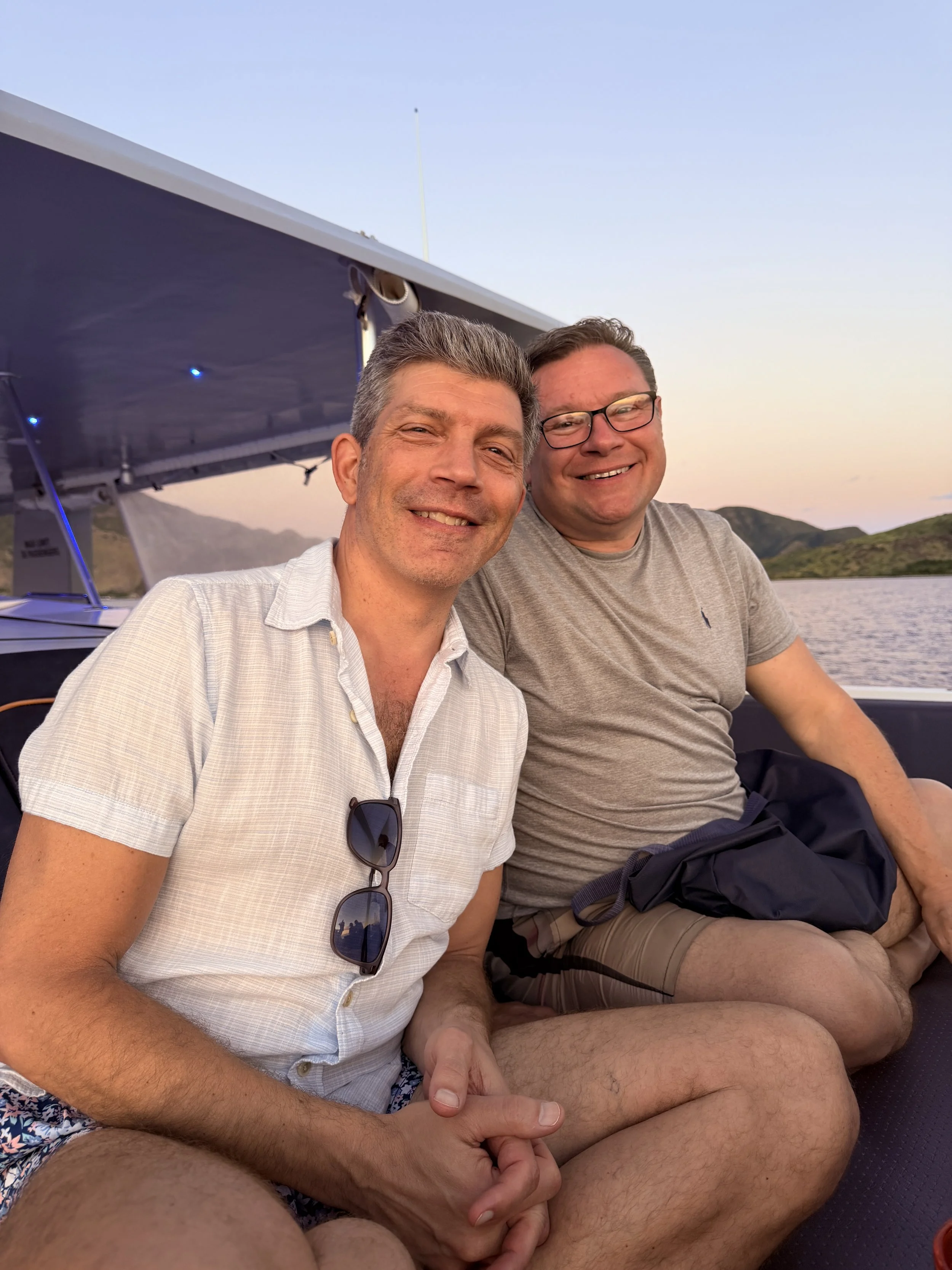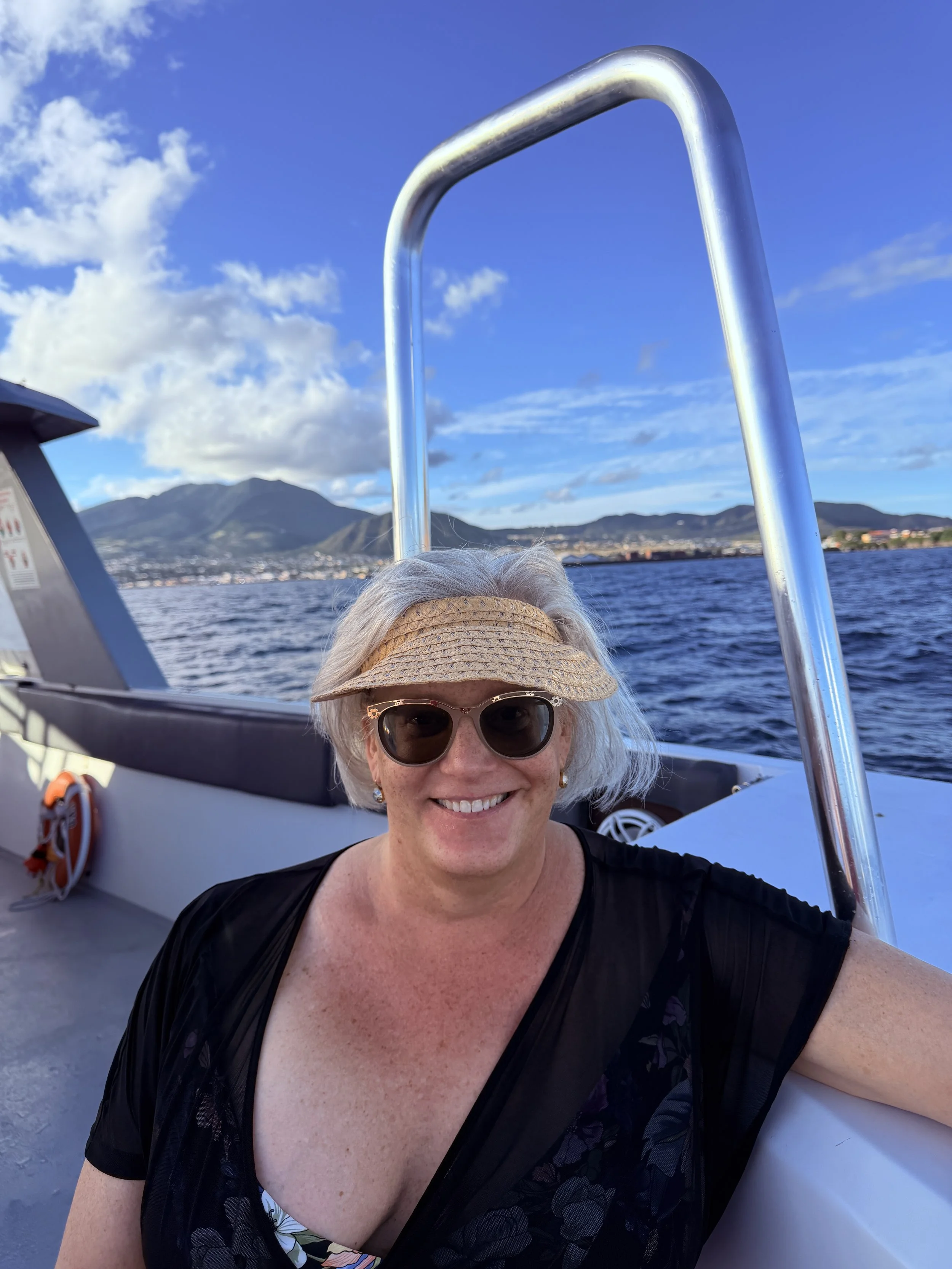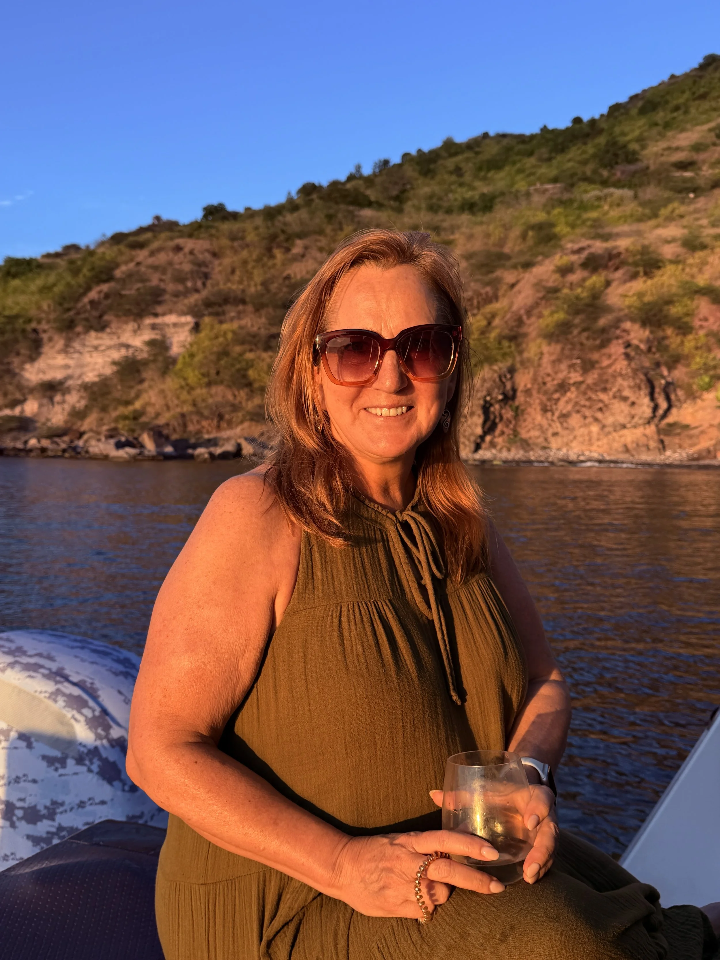 ST KITTS: The last day of 2025 found us in port at St Kitts. It was beautiful. Susan had previously chartered us a sunset catamaran cruise that afternoon. The Orange Cat was awesome. Just the group of 7 (no Sarah due to sickness) of us on a sail out to a protected harbor area for a quick swim. We were able to watch the sun set as we sailed back toward our ship for New Year’s Eve on the top deck of the Quest.
