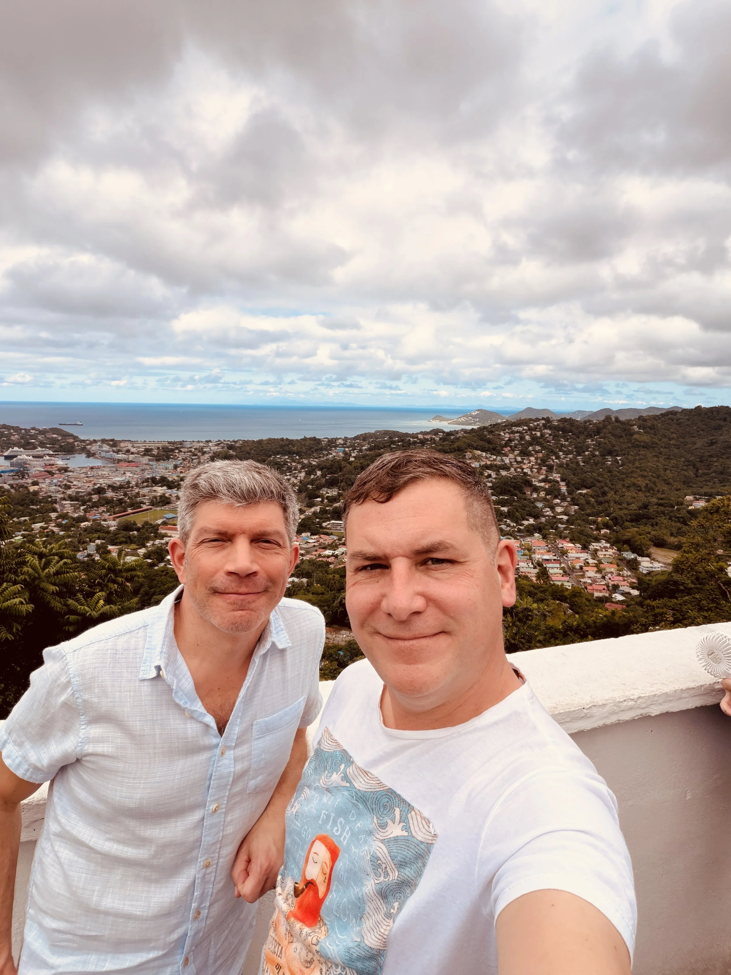 ST LUCIA: The day of the Banana Farm… Our excursion to see an active banana farm [that we had booked a month in advance] was canceled unexpectantly when we boarded the ship. Instead of being waitlisted for another excursion, Chad, John and I decided to just hire a local guide in the port when we got off the ship. Our guide, Joy, said he could take us to see a banana farm. Chad negotiated Joy from $350 for 4 hours down to $150 for a 2-hour tour out to see the active banana farms. We got an expert tour of St Lucia. We saw the governor mansion, university, a neighborhood bodega/bar (with a couple shots of rum), and even the beach. When Chad finally said, “OK, we are ready to see the banana farm.” Joy said that they were too far away and there would never have been enough time. I suggested he take us into the farmer’s market in the town center to buy some bananas. Off we went. When Joy jumped out of the van to go buy the bananas, I casually told Chad that John and I don’t really like bananas… It was a fun tour anyway, but I think Chad talked him down to $100 at the end.