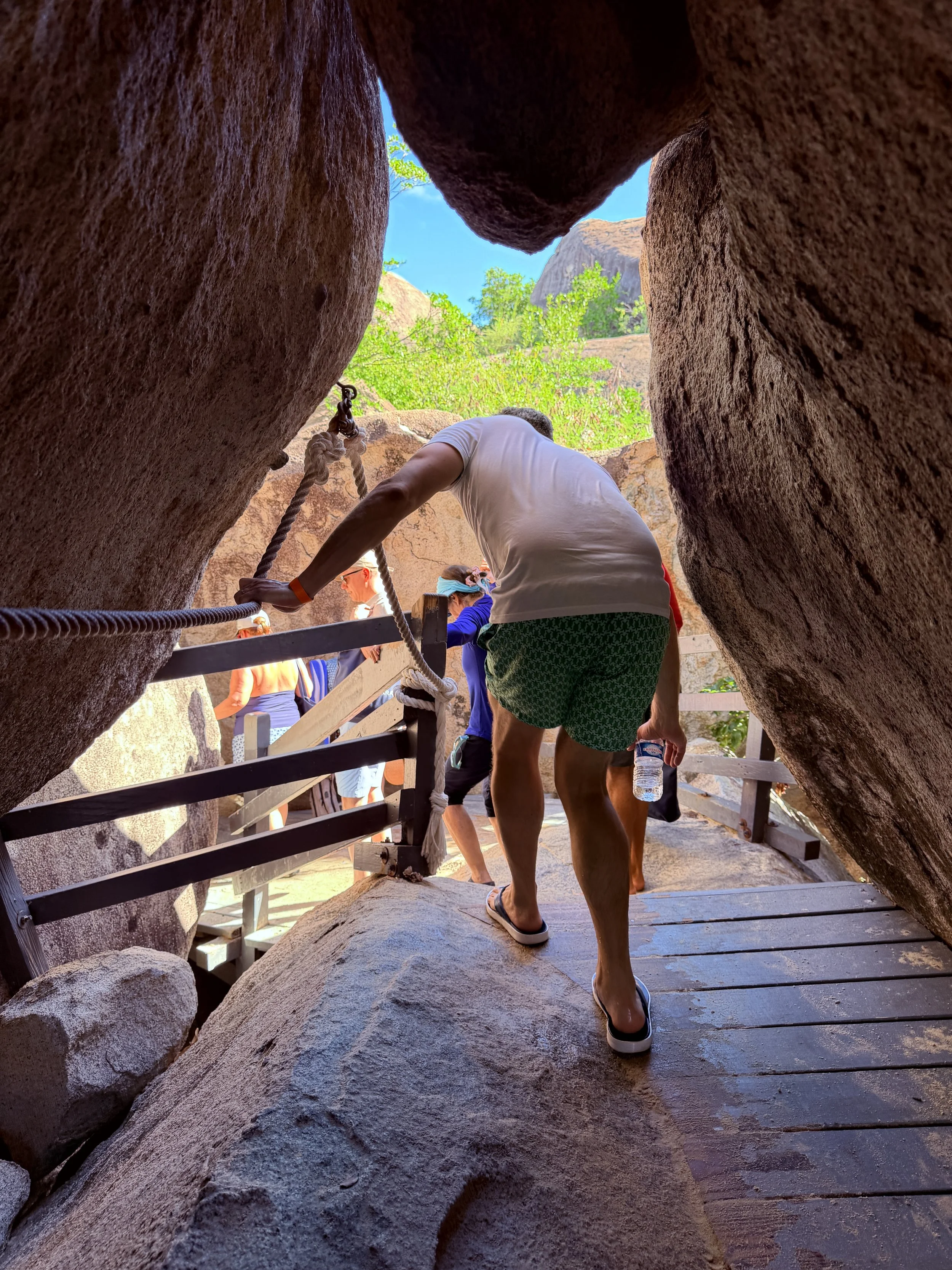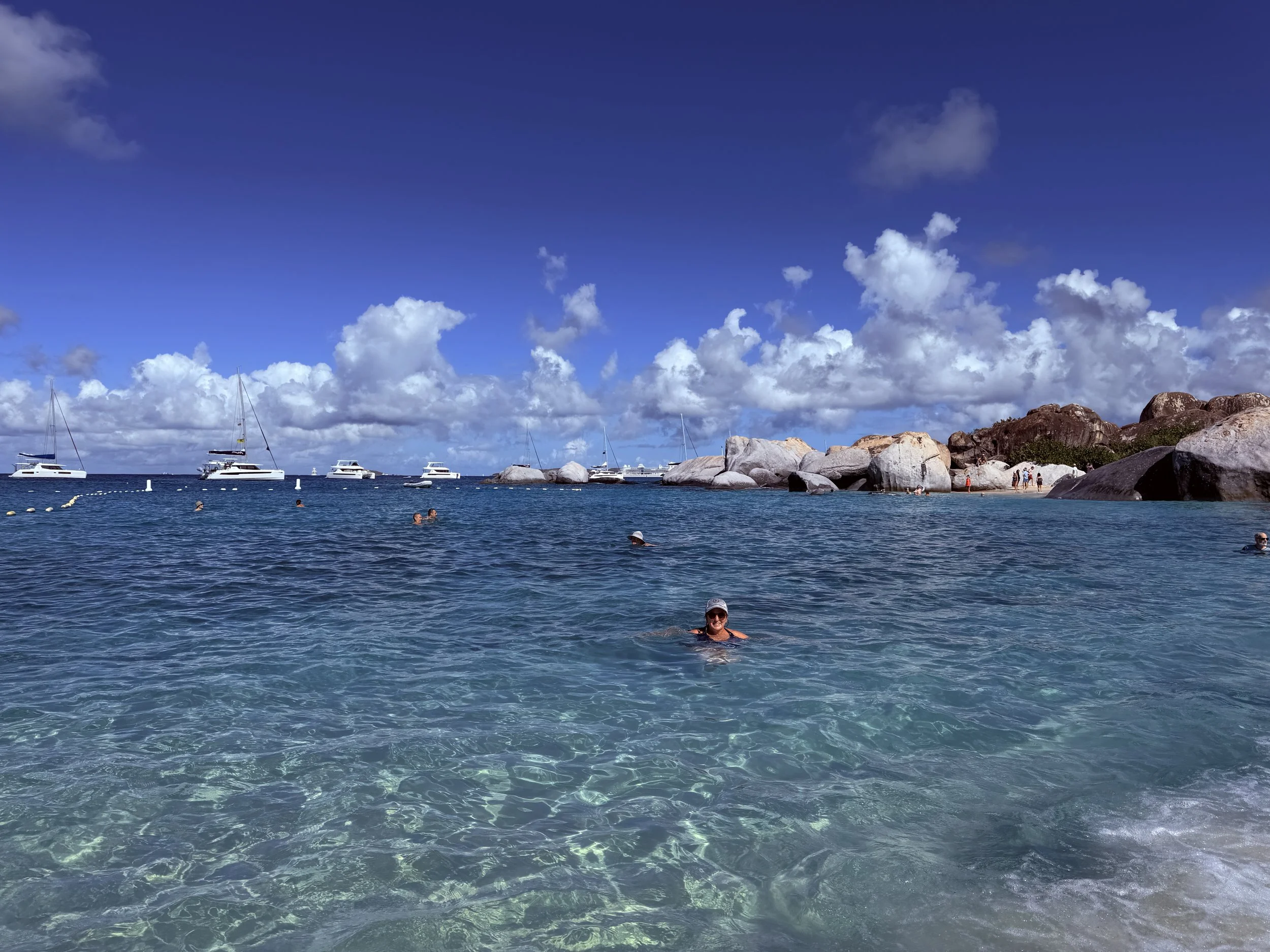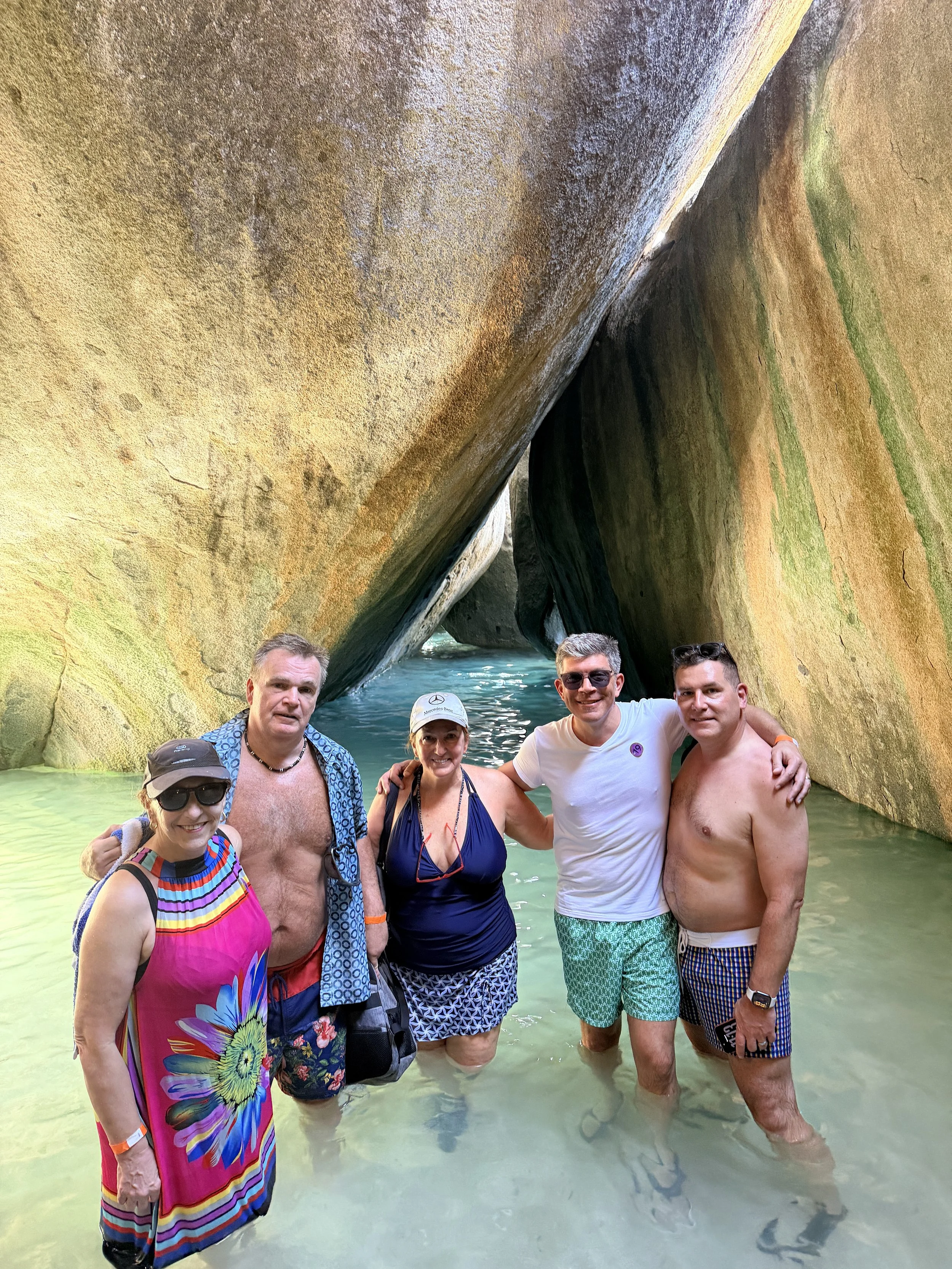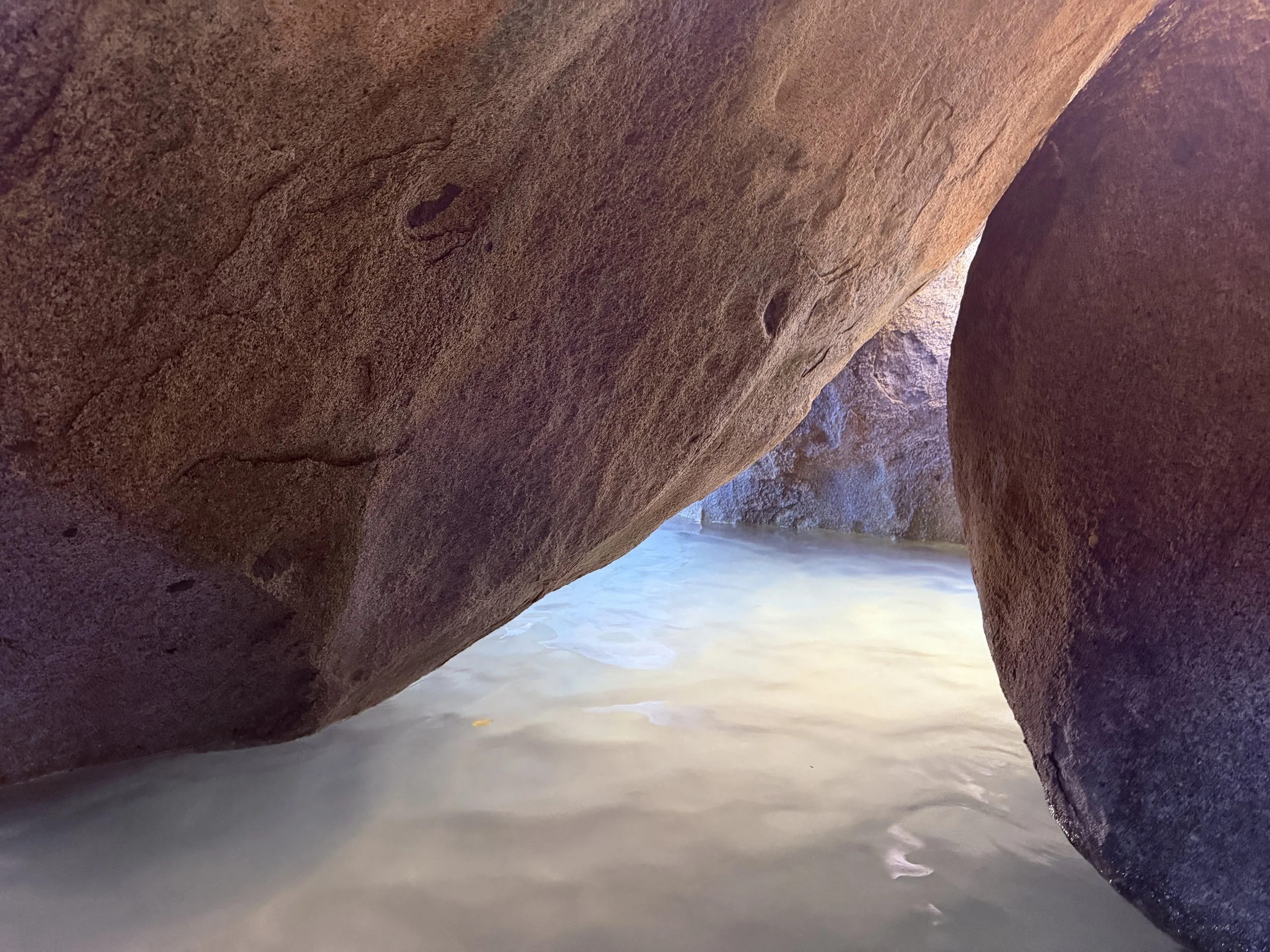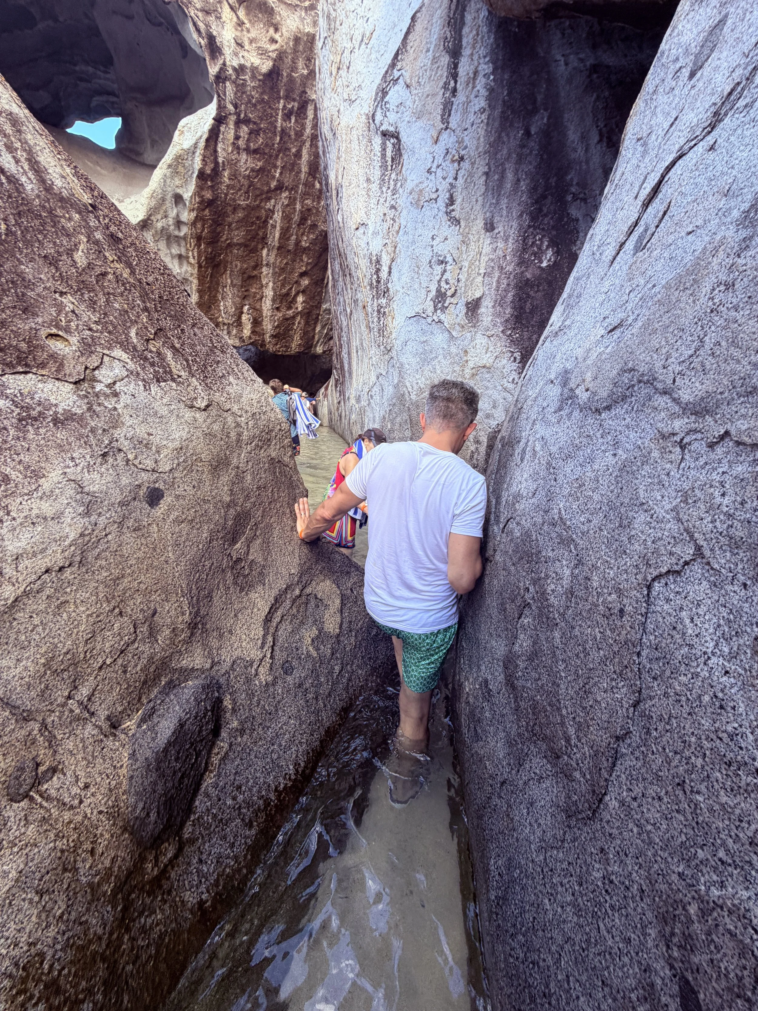 TORTOLA / BVI: This was my favorite day of the cruise. Our excursion took us by catamaran over to the Baths/ Virgin Gorga. A hike down to perfect beaches strewn with giant boulders. As you climbed through and under the giant rocks, you found pristine water and vibrant colors dancing all around you.