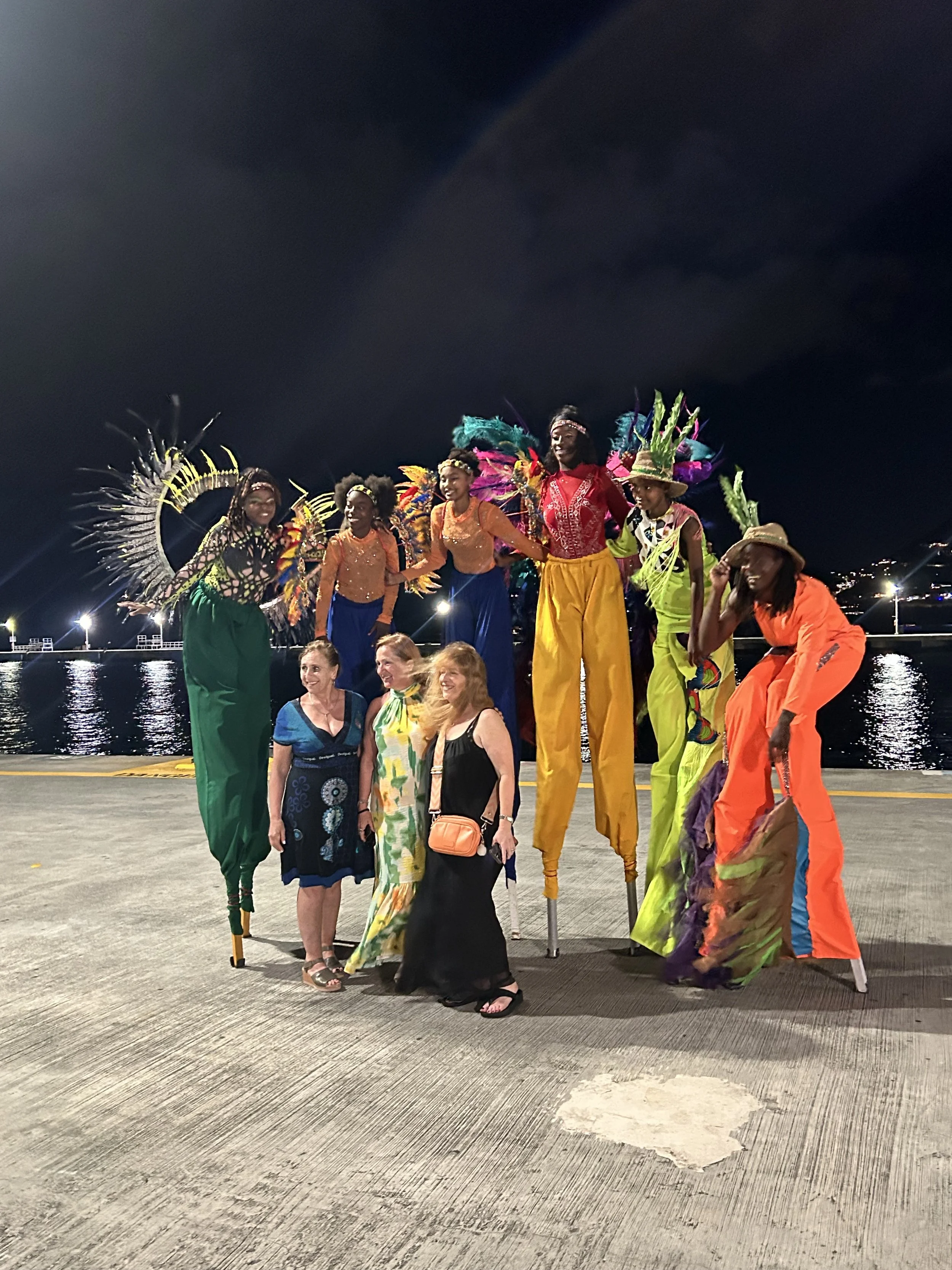 SINT MAARTEN: The half Dutch/half French island is a fun way to see two very different cultures. Sint Maarten/St Marten was a beautiful island. Our excursion (for Chad, John, and me) was to see both sides of the island and end with a wine and cheese tasting at a Dutch cheese shop. We enjoyed our leisurely tour of the island, but were disappointed when it was discovered that our tour operator had not booked the correct time for the wine/cheese tasting. We were told we could wait 45 minutes for the tasting and then walk back to the ship or just get a sample of cheese. Of course we waited. We walked the shops to kill 45 minutes before returning to the shop. Hmmm, they have a different comprehension of what a wine tasting is… we were poured a glass of sangria (very sweet) and given 5 little bites of cheese. We should not have waited, but the walk back to the ship was wonderful. Azamara has a specialty event on every cruise where you go into port and see a cultural event. Sint Maarten was the Azamazing event night.