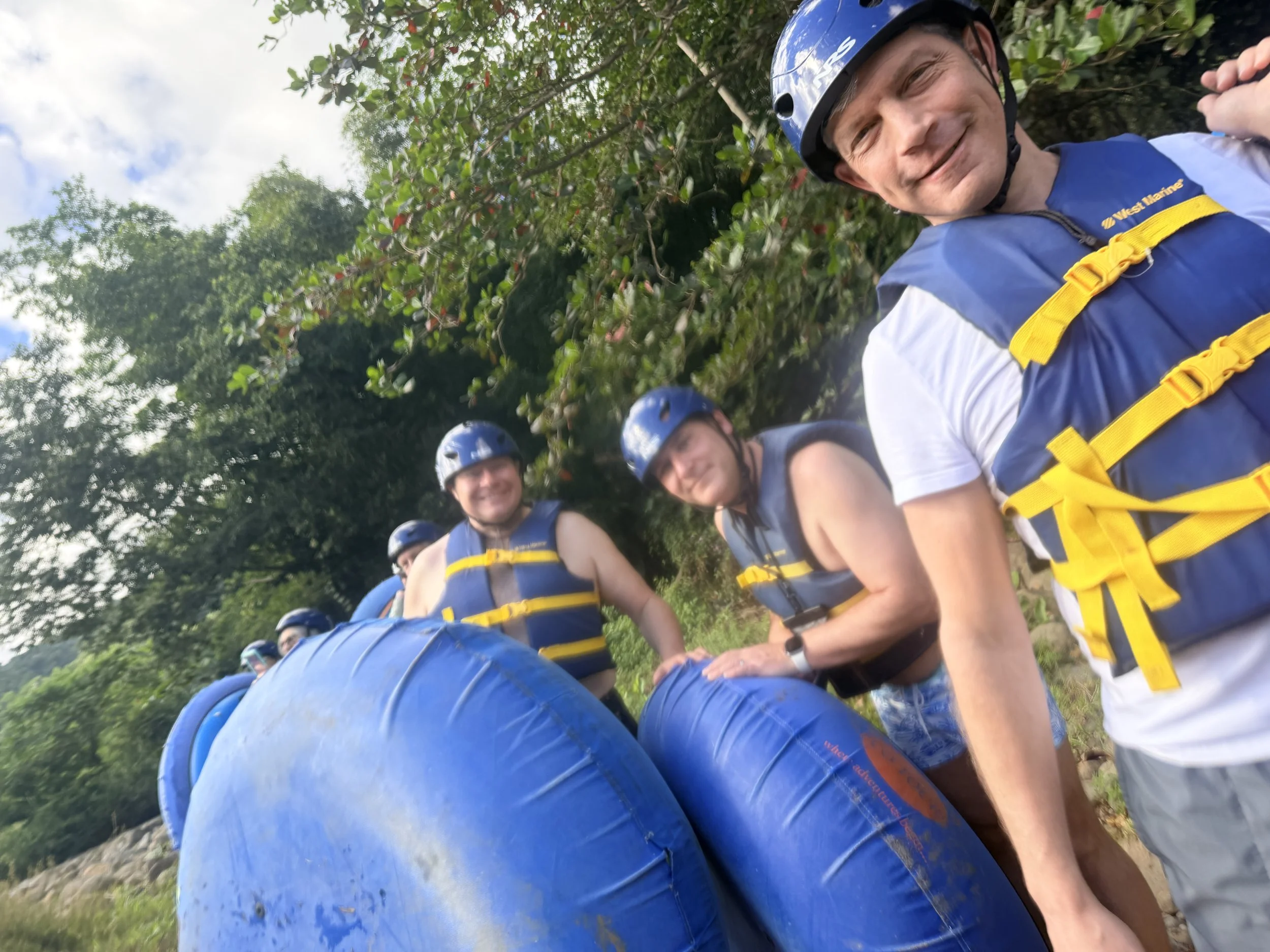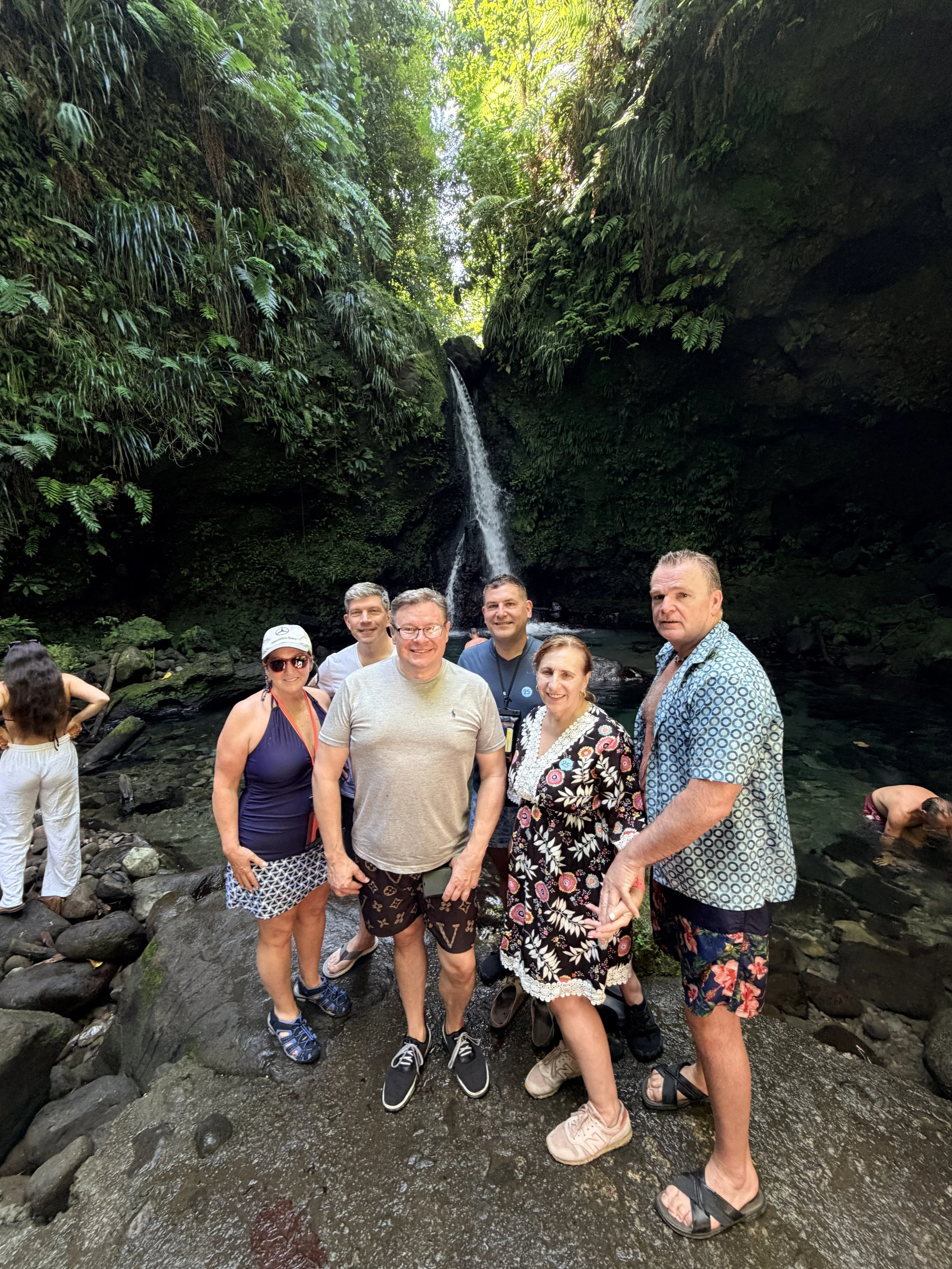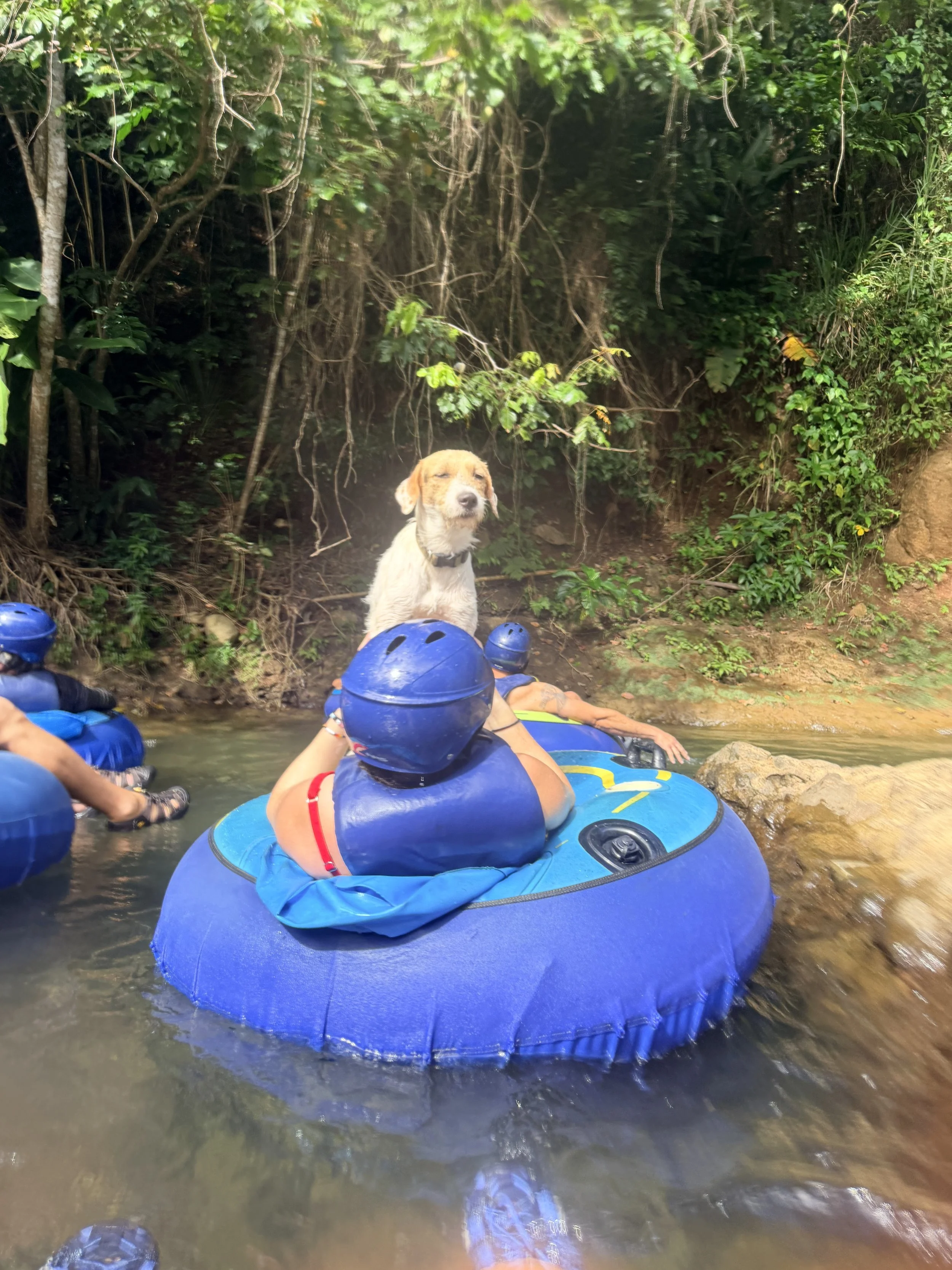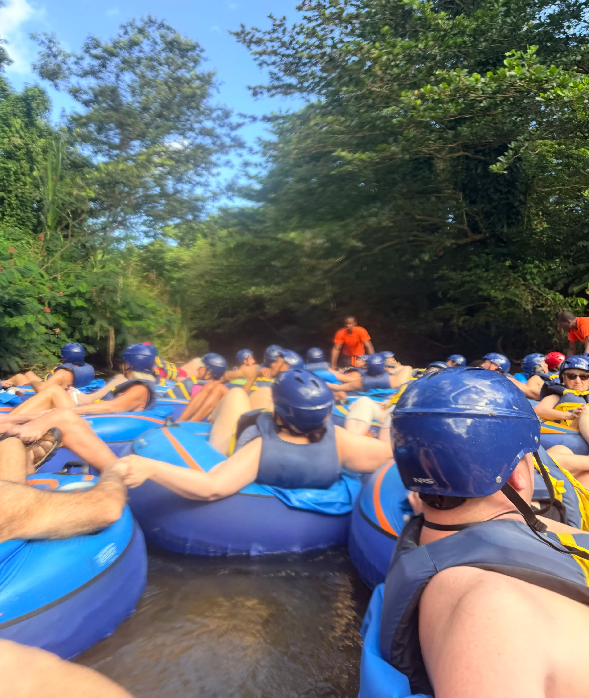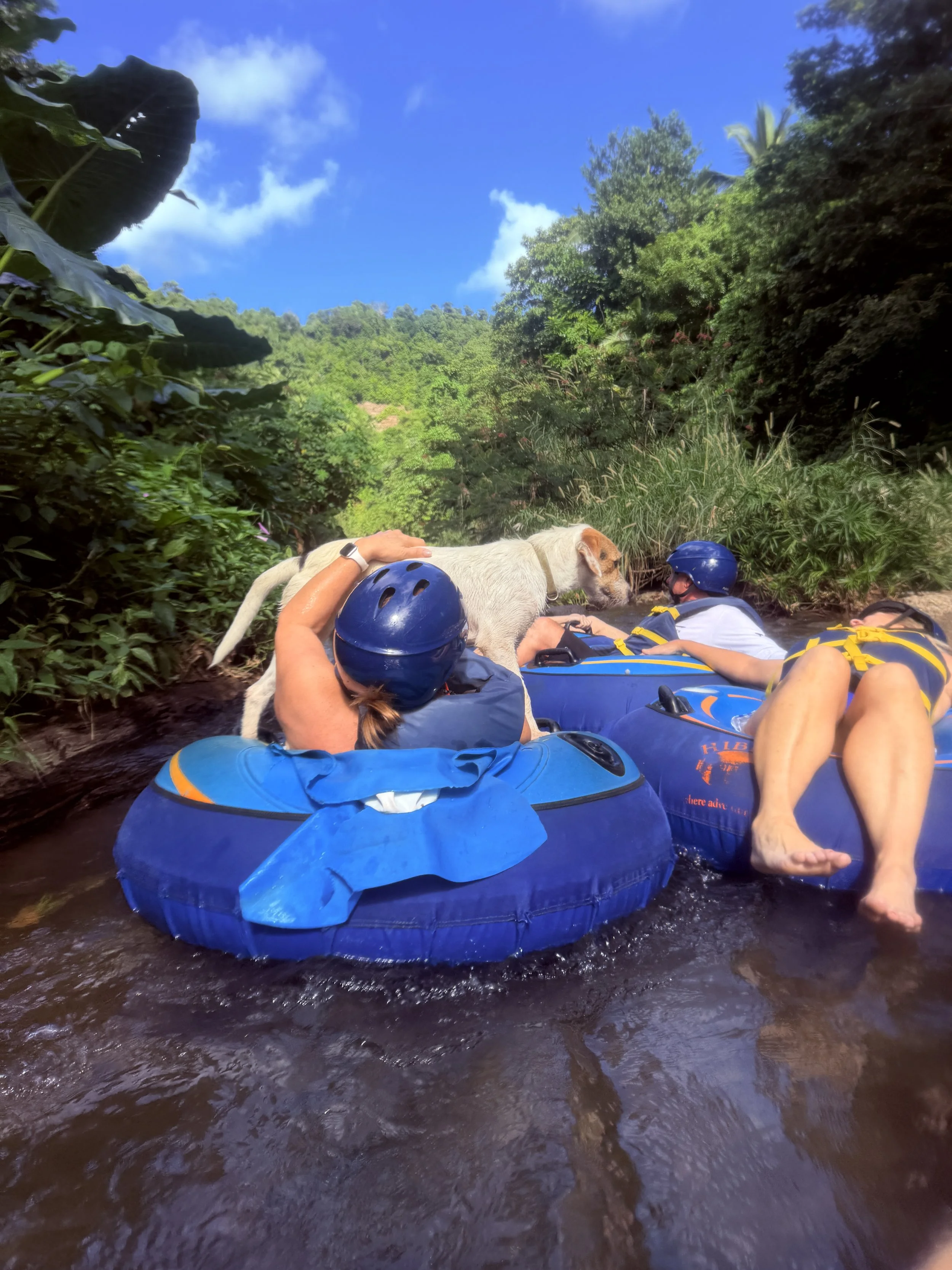 DOMINICA: Off on a river-tubing adventure in beautiful Dominica! Despite the smelly life vests, we had a blast! Susan even had a hitch-hiking dog on her lap for a portion of the trip down the river. On our way back to the ship we stopped an hiked down to gorgeous waterfall.
