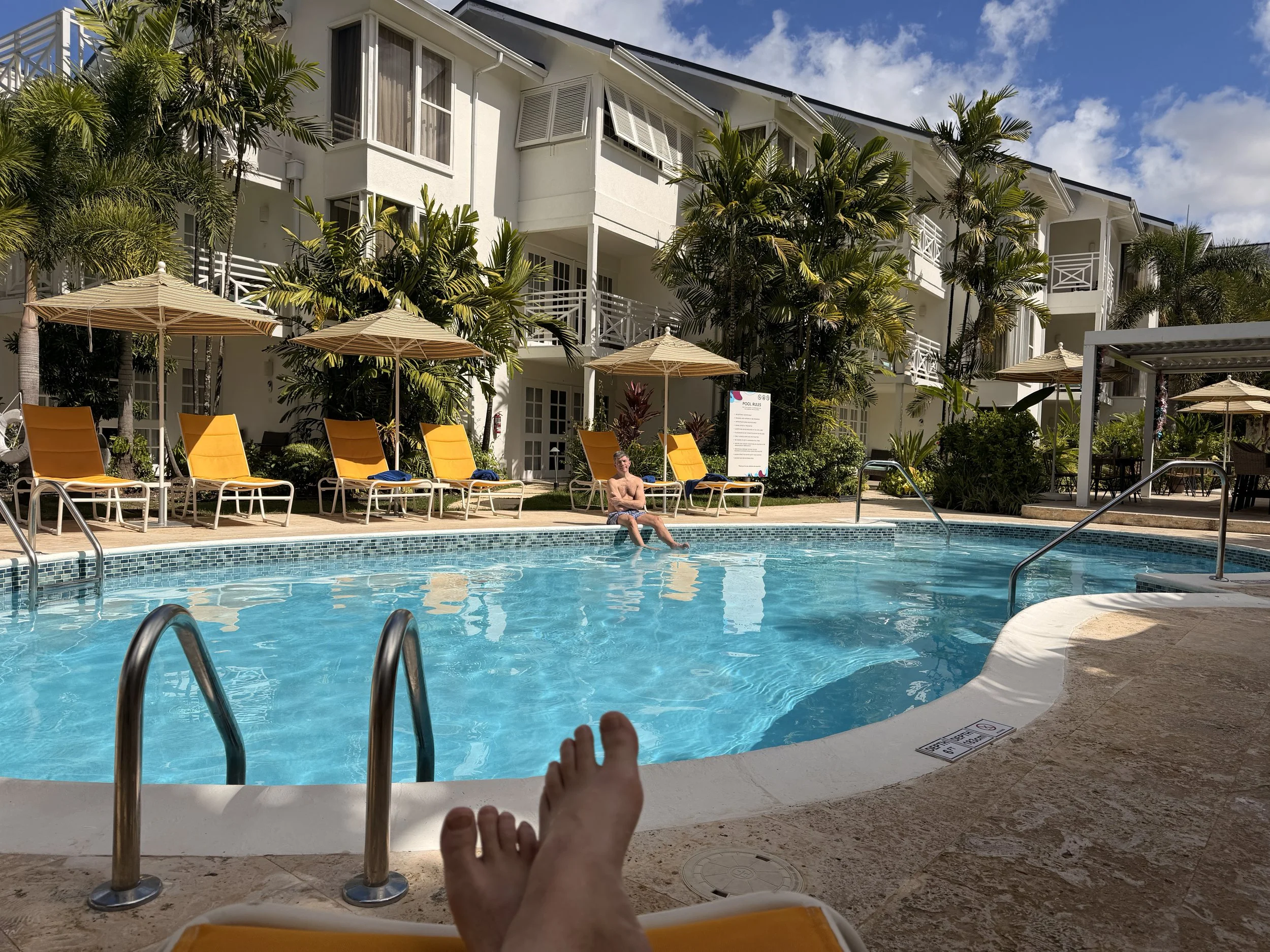 We flew into Barbados a day before the ship departed to make sure we did not have any weather or travel issues. Susan had already booked an all-inclusive resort on the west coast, but the resort was all booked up by the time John decided to join us. Two buildings to the north was another all-inclusive resort called Treasure Beach Art Hotel, part of the Autograph Collection. The resort was a small 35-room compound with access to a private beach. John, Susan, and I arrived at the airport together, but we split up on our way to the resorts. We were greeted with rum punch and settled into our suite. We had a relaxing stay, great food and drinks, and walked a gorgeous beach to unwind from the Holiday season. The following morning, Susan and Sarah walked over to take a look at our resort before we departed for the port to find our ship.